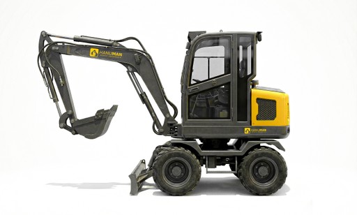 Compact wheel excavator for fast relocation, light-duty digging, and urban utility work.