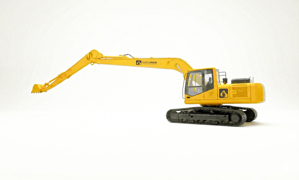 The Hanuman E220 – 15m Long Arm is a specialized excavator configuration developed for extended reach applications, including river dredging, slope finishing, deep excavation, and infrastructure projects requiring long horizontal and vertical working ranges.
